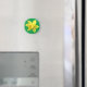 Uma foto de perto de um florescimento amarelo de daffodil em fundo verde-cinza de cor sólida.