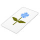 Este incrível ímã apresenta uma imagem digital de uma margarida com um tronco verde com duas folhas verdes sobre ele e pétalas claras e azuis escuras. Esta é uma design simples, mas bonita. O fundo é branco.