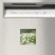 Esta design apresenta uma imagem de um campo verde cheio de belas margaridas brancas e amarelas.