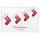 Magneta de presente de Natal da família personalizada com 4 meias penduradas. Cada estoque tem um espaço para o nome de cada membro da família. A mensagem mostrada pode ser personalizada. Um presente divertido para as famílias darem aos avós ou amigos para lhes desejarem um feriado feliz.