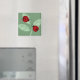 O Magnet Personalizado tem duas belas joias vermelhas em folhas com fundo verde.