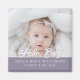 Esta imã de geladeira apresenta uma fonte moderna, chamada "Olá, Bebê", na borda inferior da sua foto do seu próprio bebê acima de um fundo roxo de múmia escura, com o nome do seu bebê e a data de nascimento em uma fonte branca moderna e limpa.