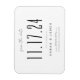 Um simples cartão moderno. Personalize este design branco e preto para ter a data do seu casamento, nomes e detalhes.