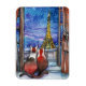 Encontro na Noite do Adorável Gatinho Casal Watercolor ACEO