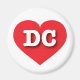 Este ímã apresenta um coração vermelho vibrante contendo as letras maiúsculas, brancas e em negrito DC, a abreviatura oficial do Distrito de Colúmbia.