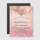 Um fundo rosa dourado e cinza rosa-claro. Decorado com rosa dourado, brilho rosado, aspecto de pingar tinta e balões. Personalize e adicione um nome e detalhes da parte. O nome é escrito com um script de estilo manuscrito