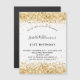 Para um aniversário elegante de 21 ruas (ou qualquer idade). Um fundo branco na moda. Decorado com faíscas douradas brilhantes. Personalize e adicione um nome, idade e detalhes da festa. O nome é escrito com um script de estilo manuscrito