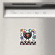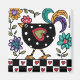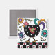 Magneta de frango preto e bonito feito em estilo de arte popular com flores e corações.