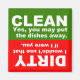 Magnet para colocar na frente da máquina de lavar louça para ajudar a lembrar se os pratos estão limpos ou sujos. CLEAN - Sim, pode guardar a louça. Não usaria isso se fosse você.