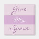 Todos nós precisamos de algum espaço, seja a primeira coisa da manhã antes da primeira xícara de chá ou café, ou durante um momento solitário de pensamento mais tarde no dia. Aqui está uma maneira elegante de passar a mensagem de que você precisa de algum tempo sozinho com as palavras Dê-me o Espaço em uma letra de script contra um delicado fundo de massa.