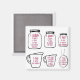 Este ímã é de medidas comuns de cozinha em frascos-pedras desenhados à mão, copos medidores e colher.