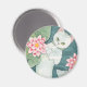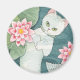 Este mercador bonitinho está a passar por baixo das flores de lótus.