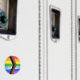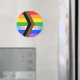 Íman SCV Queer com arco-íris transinclusivo e as faixas racialmente inclusivas dispostas em flecha de progresso