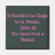 Em texto cor-de-rosa lê-se: "Não deveria ser ilegal ser mulher, depois de tudo que você veio de uma mulher."