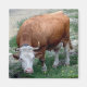 Este ímã fotográfico mostra uma típica vaca alpina castanha que se alimenta de um lado montanhoso nos Alpes suíços. Esta imagem tipicamente suíça lembrará a Suiça e os Alpes onde quer que você esteja. Também disponível em forma redonda.