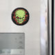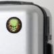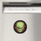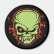 Crânio de monstro verde com presas amarelas e pêlos crus vermelhos no seu olho de mau. Com um contorno vermelho e um espalhamento. Camisas, capuzes, cartas, presentes.