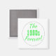 Diversão e retrô dos anos 80 dizendo imã! O texto para o ditado é "The 1980s Forever!" em tipografia divertida e um design de círculo.