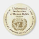 Este ímã redondo tem um fundo castanho rústico e parte do artigo 01.º da Declaração Universal dos Direitos do Homem das Nações Unidas: Todos os seres humanos são livres de nasceres e iguais em dignidade e direitos. Este documento, composto por 30 artigos, consagra os direitos e liberdades de todos os seres humanos. Foi aprovado em 10 de dezembro de 1948, depois de 48 das 58 nações terem votado a favor (oito se abstiveram e duas não votaram ou se abstiveram).