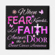 Cancer inspirador de mama, citação de "Quando O MEDO Bate, Deixe a Fé Responder a Porta" para lutadores canceres que têm fé em Deus.