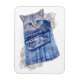 Gráficos de textura denim decorados com rendas de creme branco para amantes de gatos com bolsos de jean e gatinhos azuis, verdes e de olhos castanhos. Presente Fantástico para Amigos, Familiares e Colegas amantes de gatos