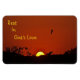 Este ímã apresenta uma imagem tranquila de uma gaivota voando ao pôr do sol com a mensagem reconfortante para descansar no amor de Deus.