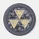 Símbolo de abrigo de precipitação precipitada, preto/amarelo sobre roxo, muito angustiado. Em t-shirts, camisolas, botões, presentes.
