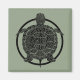 Desenho de linha de recorte de uma tartaruga de mapa em um círculo. A cor de fundo mostra através do espaço em branco de design. Inspirado pela escultura de arte em metal. Preto em verde.