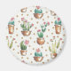 Um design de aquarela macia criado com cactos florescentes em potes de flores. Artista: Daphne Brissonnet