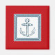 Design com temas náuticos com decoração de âncora em quadrados com faixas de fundo em fundo vermelho