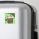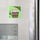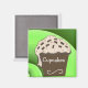 Um ímã divertido com um cupcake mocha com borrachas de chocolate em um fundo verde sombreado.