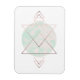 Esse trabalho de arte apresenta triângulos esboçados em um design geométrico rosa dourado metálico.