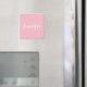 Crie seu próprio design personalizado. Você pode mudar a cor da letra branca da caligrafia de estilo manuscrito para outra opção de tendência cursiva. Altere o tamanho da fonte para ajustado do seu nome personalizado. Esta mensagem de texto pessoal pode ocupar a maior parte da área do impressão que você gostaria. Personalize o fundo cor-de-rosa claro e sólido para a sua cor favorita, ou uma cor que corresponda ou coordene com a sua decoração doméstica.