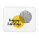 Design gráfico moderno, vibrante e lúdico de um ditado "Feliz Feriados" com círculos em cores amarela e preta. Tipografia manuscrita.