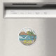 Destin Beach, ilustração desenhada à mão com montanhas e ondas oceânicas no fundo. Perfeito para quem ama visitar Destin Beach.