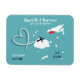 É divertido salvar a data para casais se casarem nas Ilhas Fiji, que é mostrado em um mapa branco da silhueta em cima de corações doces e vermelhos e tão fácil de personalizar com seus nomes pessoais e mensagens