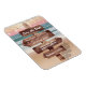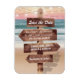 Ímãs de salve a data de casamento romântico à beira-mar com uma praia arenosa de pôr do sol exuberante, luzes cintilantes e sua redação escrita em um letreiro de madeira rústica.
