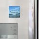 Uma bela vista do oceano com ondas correndo para a costa. O céu é tão azul com algumas nuvens brancas. No céu estão as palavras "Deus é bom o tempo todo" com 3 pássaros coloridos diferentes voando ao redor dessas palavras.