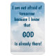Este ímã mostra as palavras "Não tenho medo de amanhã porque sei que DEUS já está lá!" Aproveite seu novo Deus já está lá, Magnet!