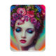 Um belo retrato nouveau de arte gerado por ai de uma mulher em um chapéu feito de flores, cercado por uma aura arco-íris. Seria uma bela adição a um boudoir ou ao quarto de uma garota.