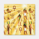 Alguns membros do antigo panteão egípcio: Amun Ra, Isis, Anubis, Sesheta e Sebek Ra. Os feixes do Sol brilham sobre (ou de) eles.