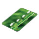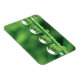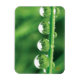 Four drops of water rest on a blade of grass reflecting the world around them, in this beautiful, elegant, nature meditation magnet.