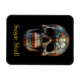 Adicione um toque vibrante e artístico ao seu frigorífico, armário ou qualquer superfície magnética com este impressionante ímã flexível que inclui o Dia 3D detalhado do design do crânio morto. A design apresenta uma base preta, rica em adornados com intrincados padrões florais e rolantes em contraste com ouro metálico, chalé e cobre, incorporando o espírito de Día de los Muertos. Entre essas decorações tradicionais do crânio estão marigóis estilizados (cempasúchil), a flor icônica de Día de los Muertos, além de videiras giratórias e flores simbólicas. Os sotaques metálicos dão ao crânio uma aparência dimensional, quase emboscada, fazer desses detalhes culturalmente significativos, verdadeiramente pop. Abaixo do trabalho de arte do crânio cativante está um campo de texto personalizável, que permite adicionar um nome, uma data significativa ou uma mensagem pessoal, fazer este ímã de uma forma única e na moda para celebrar Día de los Muertos ou mostrar o seu talento individual.