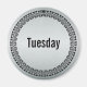 Texto do círculo de aparência metálica para lembretes diários de organização para casa ou escritório. Este ímã organizador é para terça.