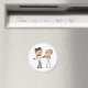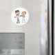 A design do Dia do Casamento da Noite e do Groom mostra a noiva e o noivo de mãos dadas e celebrando seu casamento. Ele veste chapéu de cima e gravata de arco e ela veste um vestido de noiva e segura flores. Um gráfico divertido de um casal feliz que é recem casados!