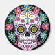 O crânio de açúcar Dia de los Muertos está cercado por flores coloridas.
