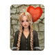 Renderização digital em 3D de uma bela adolescente em um retrô vestido segurando um balão em forma de coração num fundo de parede de pedra. Presente de Dia de os namorados perfeito