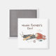 Um imã do dia do pai com Chapel Smith, uma menina ruiva fofa com dois rabos-de-cavalo vermelhos deitados no chão inconscientes que foi derrubada pelo arremesso de beisebol do seu pai com seu boné de beisebol antigo, azul e branco, o bastão de beisebol, e o baseball no chão, seus óculos se torturando em seu rosto com estrelas ao redor da sua cabeça. Há também o ditado "Feliz Dia do Pai". Um presente perfeito para qualquer pai ou avô!