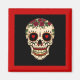 Um design do estilo do crânio de açúcar para o Dia dos Mortos - Dia De Los Muertos. Crânio com corações e flores, rosas vermelhas, sobre fundo preto e vermelho.