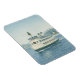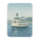 Celebre a estação com um toque de charme náutico. Este elegante ímã de Natal apresenta um ferry clássico decorado com uma coroa festiva e árvore de Natal, navegando por um porto nevado numa manhã de inverno nítida.