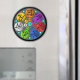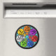 Um ímã de geladeira exibindo as abreviações japonesa e inglesa para os dias da semana.